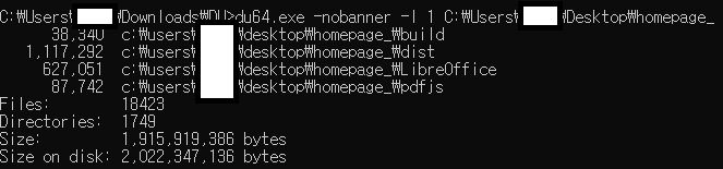 du -q -nobanner "C:\Project"πΉ νμ ν΄λ 1λ¨κ³κΉμ§λ§ 보기