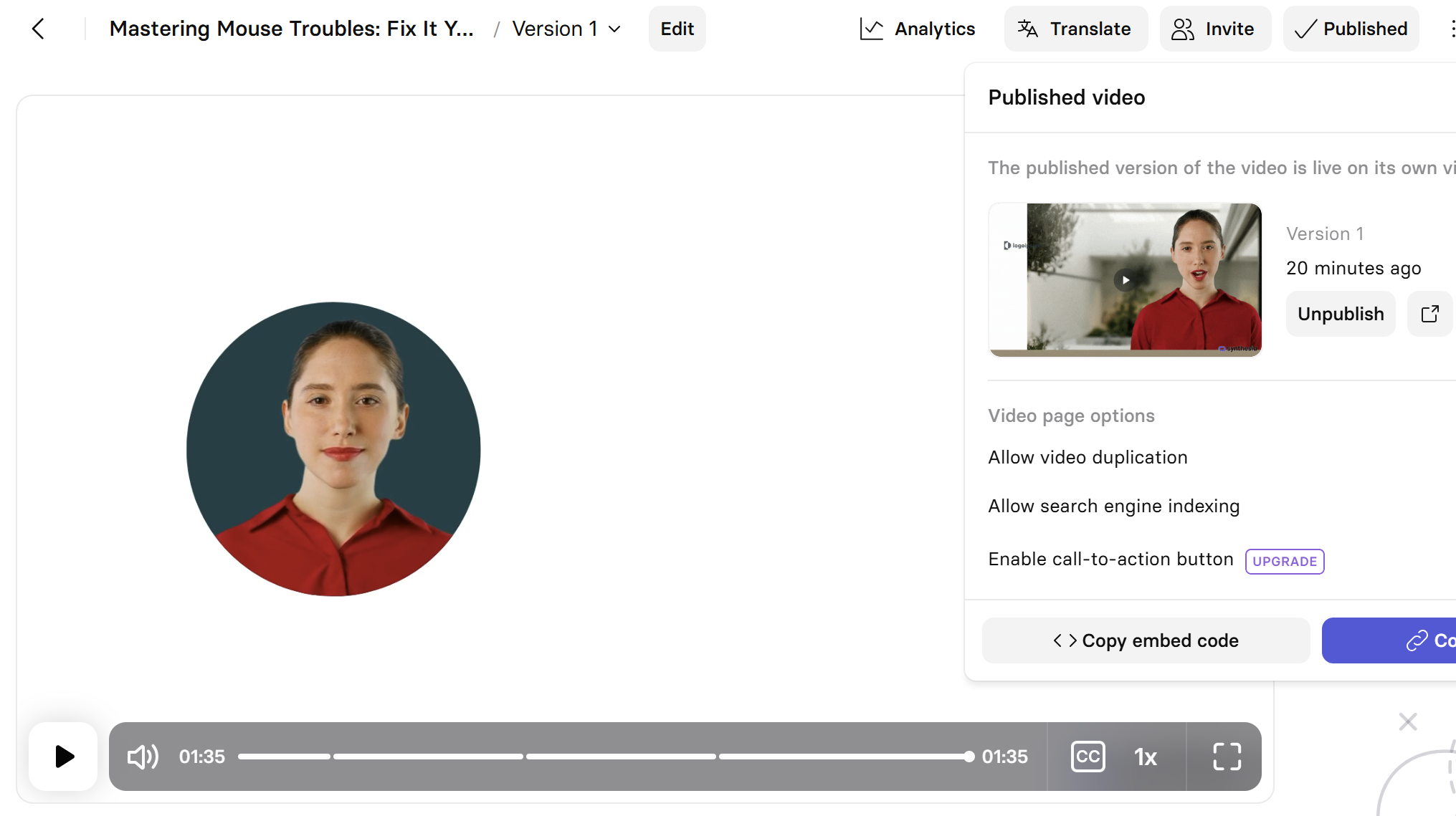 Synthesiaλ μ€μ¬ κΈ°λ° AI μλ°νκ° μ λ ₯λ ν μ€νΈλ₯Ό μ€μ μ¬λμ²λΌ λ§νλ©° μμμ μμ±ν΄μ£Όλ μΉ κΈ°λ° νλ«νΌμ λλ€.