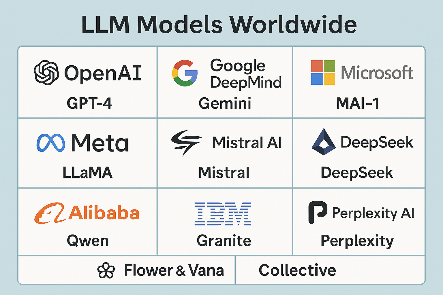 ์ ์ธ๊ณ์ ์ผ๋ก ๋ํ ์ธ์ด ๋ชจ๋ธ(LLM, Large Language Model)์ ๊ฐ๋ฐ์ด ํ๋ฐํ ์งํ๋๊ณ ์์ผ๋ฉฐ, ๋ค์ํ ๊ธฐ์ ๋ค์ด ๊ฒฝ์์ ์ผ๋ก ํ์ ์ ์ธ ๋ชจ๋ธ๊ณผ ์๋น์ค๋ฅผ ์ ๋ณด์ด๊ณ ์์ต๋๋ค. ์๋๋ ์ฃผ์ ๊ธฐ์ ๋ค๊ณผ ๊ทธ๋ค์ ๋ํ์ ์ธ LLM ๋ฐ ์๋น์ค์ ๋ํ ์์ธํ ์ค๋ช ์ ๋๋ค.