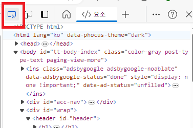 - 개발자 도구 왼쪽 상단 버튼 클릭