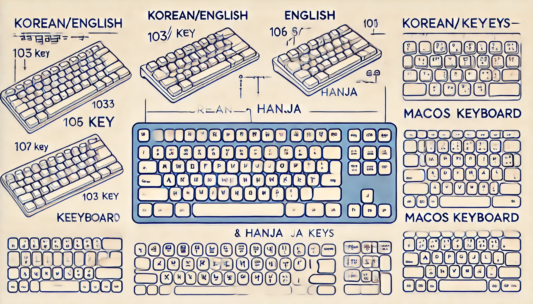 | 한글 키보드(103/106) | 한영키 존재 | 한자키 존재 |
